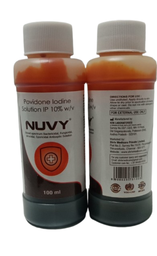 Treatment of Bacterial and Mycolic skin Infection Povidone iodine solution is a topical antiseptic that contains a complex of iodine and polyvinylpyrrolidone (PVP). It's used to prevent and treat infections in wounds, and to reduce the risk of infection on the skin